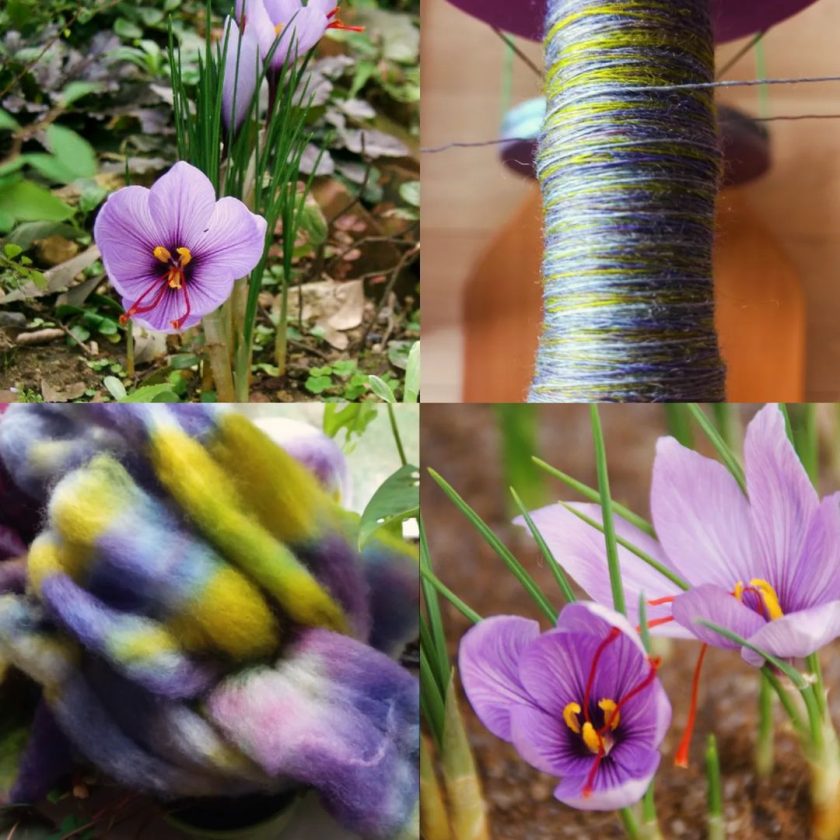I dyed this colorway last weekend, and it somehow reminded me of all the crocus flowers I see popping up so around town. One of the species of this delicate little flower produces the highly sought-after saffron threads: Crocus Sativus. The yarn will become a lovely lace weight two ply and the undyed fiber...